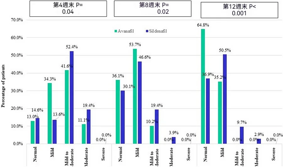 結果:在 600 名患者中,564 名(94%)完成了研究(KAMAGRA 組 284 名患者中有 267 名完成,安慰劑組 280 名患者中有 263 名完成)。